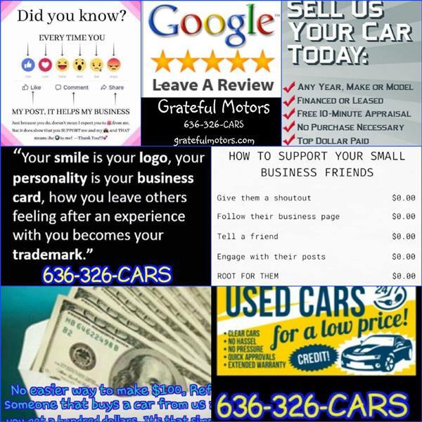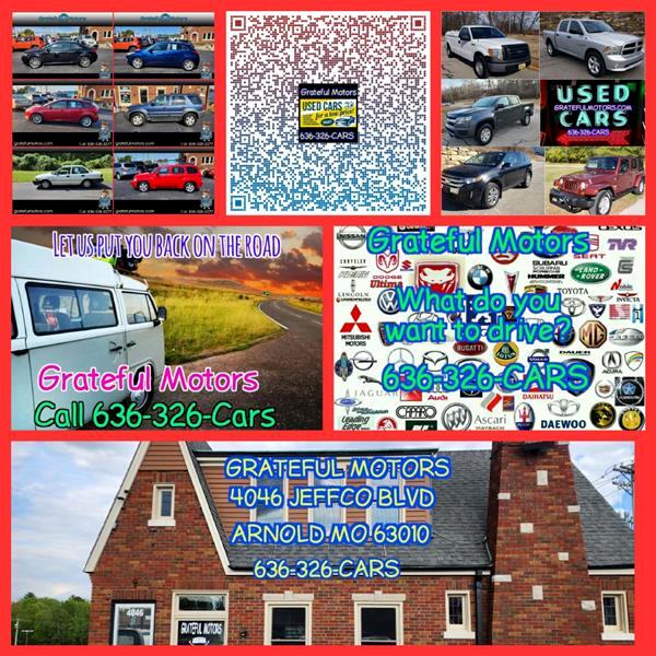 Experience for yourself why it's always worth the ride to Grateful Motors you can find us at www.gratefulmotors.com. Please call if you have any questions or if you need directions to our location. Come in today and see for yourself why other smart buyers from all across the country are choosing to purchase from us. Our goal is to help you get what you want and have fun together achieving it. Our staff is graded upon our level of customer service knowing that relationships can last forever. Find us on Facebook and like our page Grateful Motors or call us@636-326-CARS. We look forward to answering all your questions and working hard to earn your business.